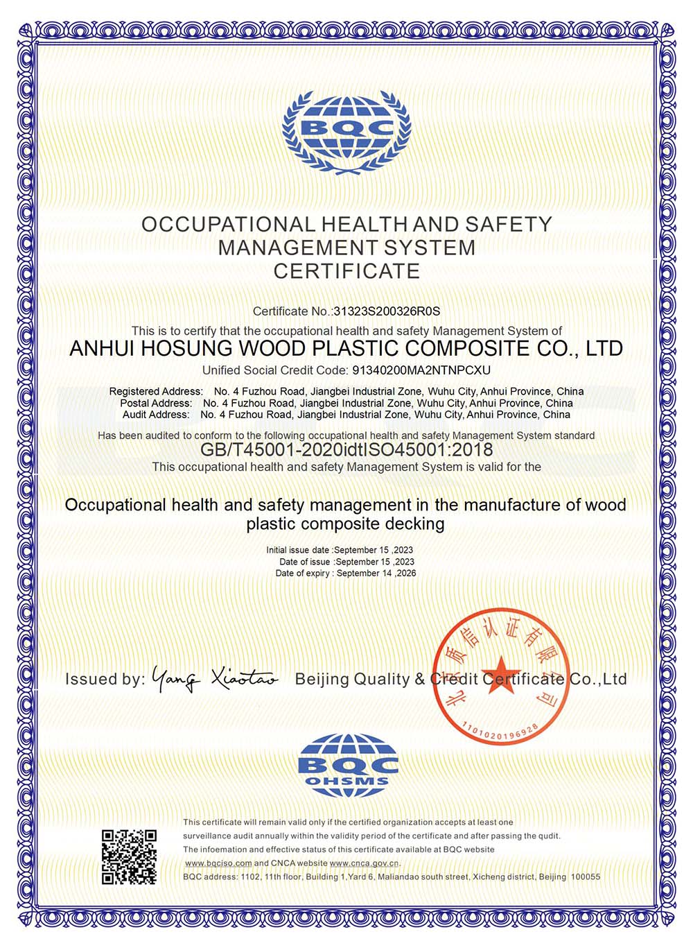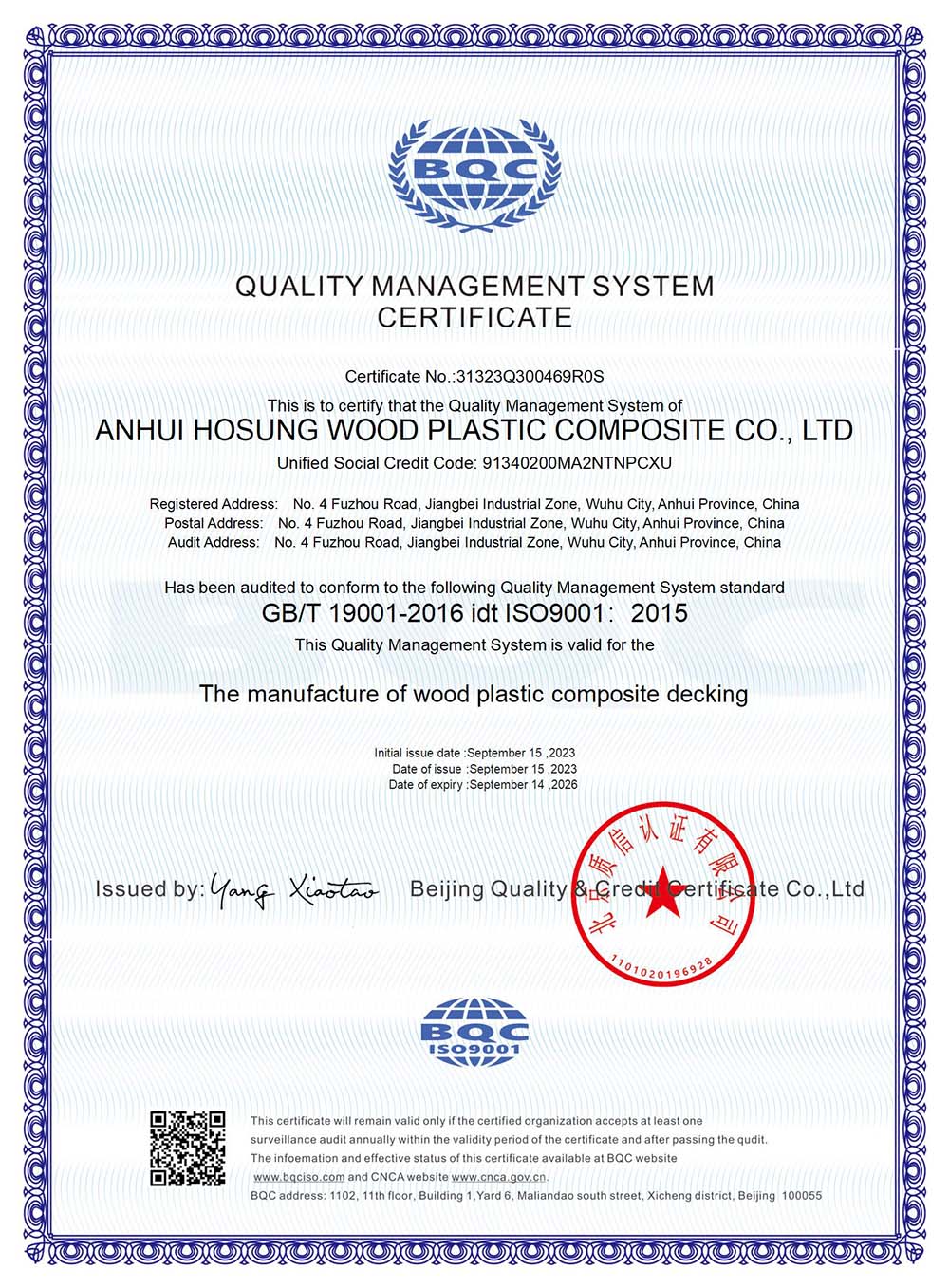 A: Our wood-plastic products comply with ISO 9001 quality management system certification and adhere to relevant international market standards, such as the EU’s CE certification and North America’s ASTM standards.