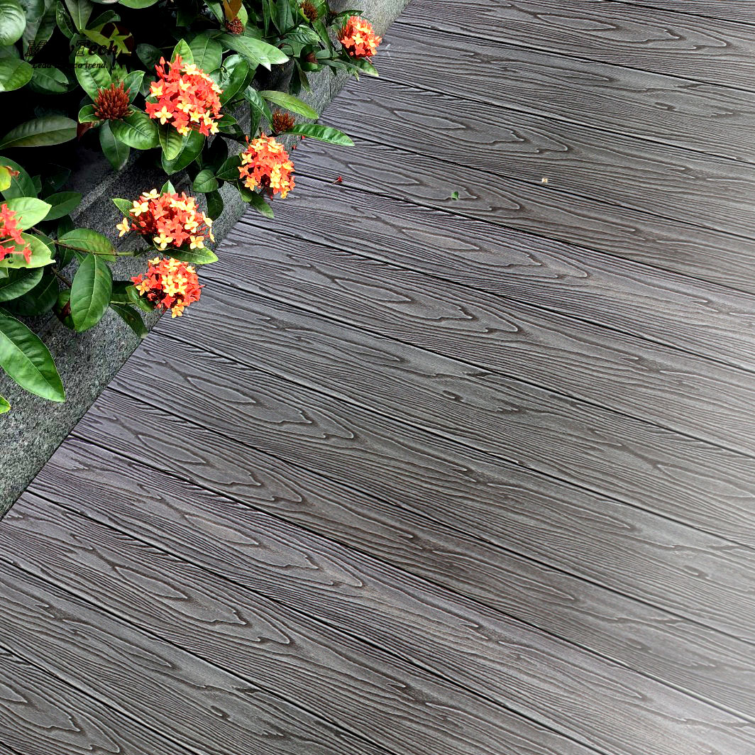 In terms of performance,the top advantage of Hosung's deep embossed composite decking is that it can stand the high-temperature oil stains of outdoor barbecues. On the other side, the delicate patterns are deeper than ordinary decking floors made by other manufacturers. As time goes by, the patterns in decking are still clearly visible. It is a deck as well as a work of art.