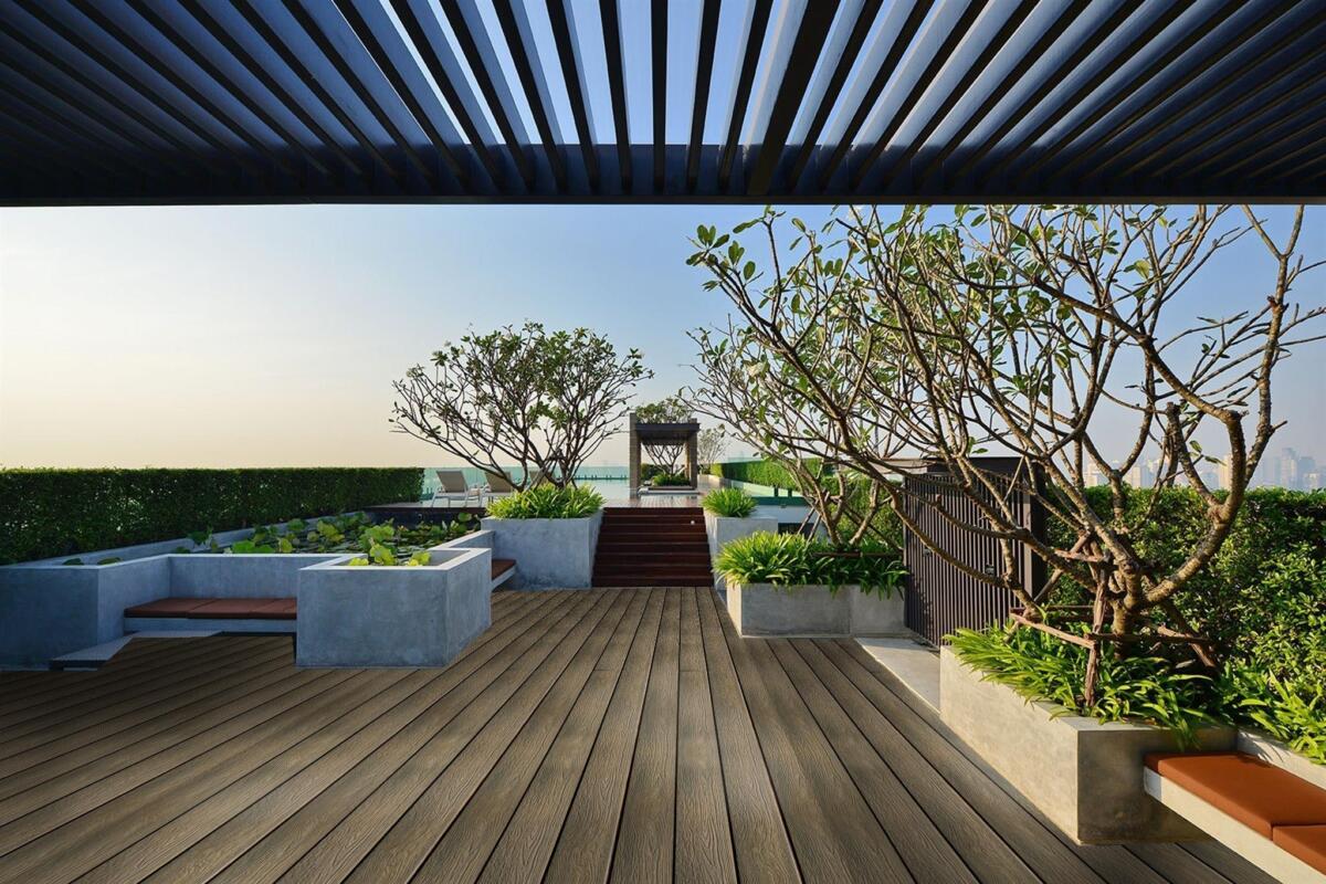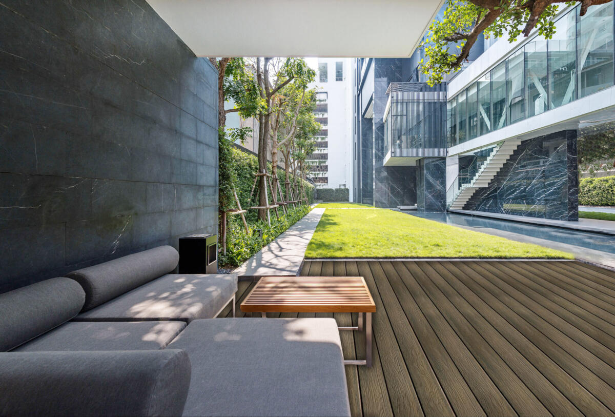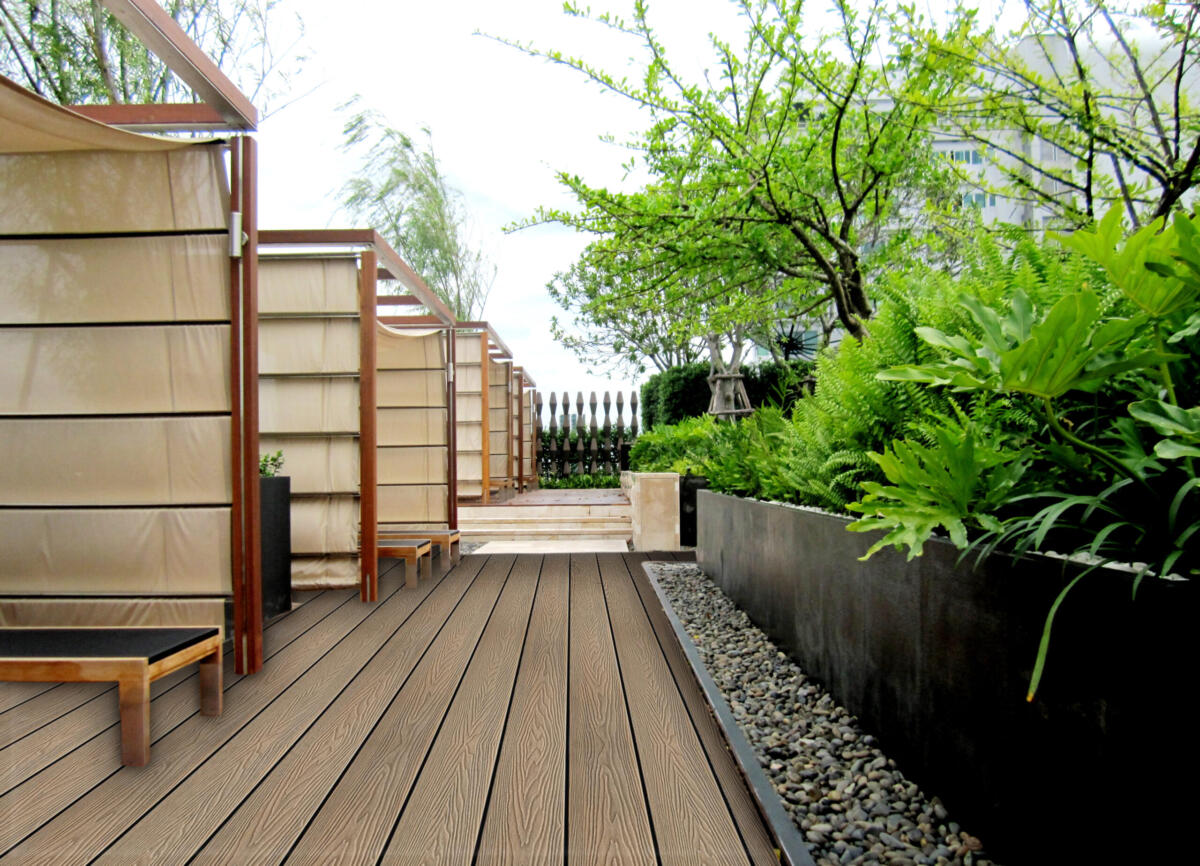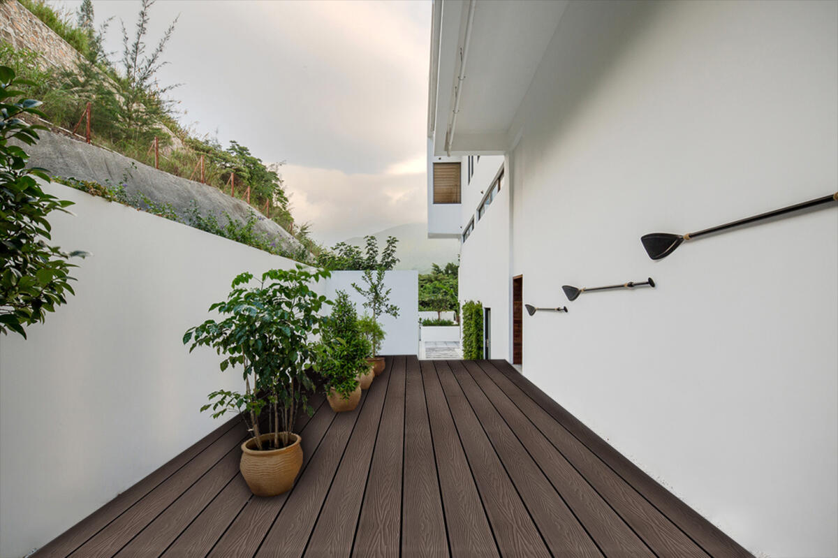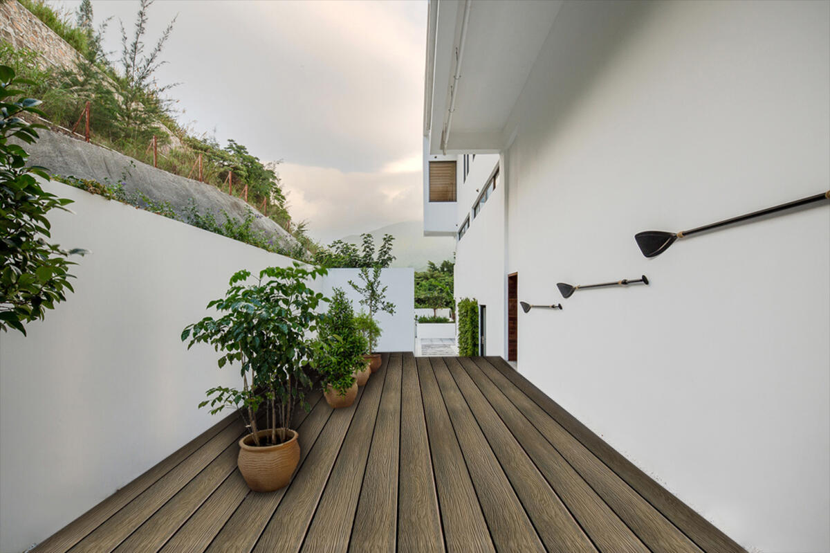 Feeling Wood as a subsidiary branch of HOSUNG.Its deep embossed grains make you feel like real wood, but without maintenance, nail surface, splinter, painting, glue, decay, fade, cracking etc. Every time you come out on the deck, it gives you a nice, warm & inviting feeling.